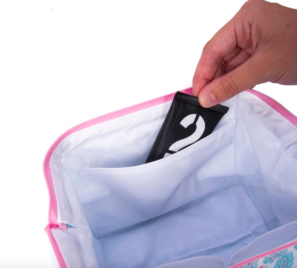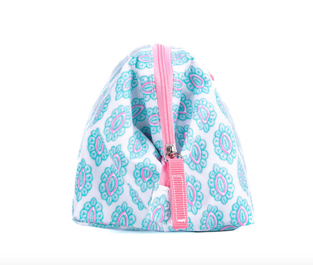 Open… WIDE! Designed for maximum access, this easy-clean bag not only opens up wide but it stays open thanks to a built-in wire frame. Ideal for travel or at-home countertop use. For a larger version, check out our Wide Mouth Makeup Bag Large.