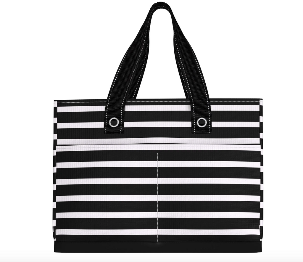 A SLIM, STRUCTURED, STURDY PERSONAL BAG. This structured everyday bag has a slim profile that carries close to the body while fitting files, a laptop, lunch, water bottle, and anything else you need to slay your day. Thanks to four large outside pockets, this sturdy, lightweight bag is a popular pick for moms, teachers, students, and nurses. For a larger version, check out the Pocket Tote Large.