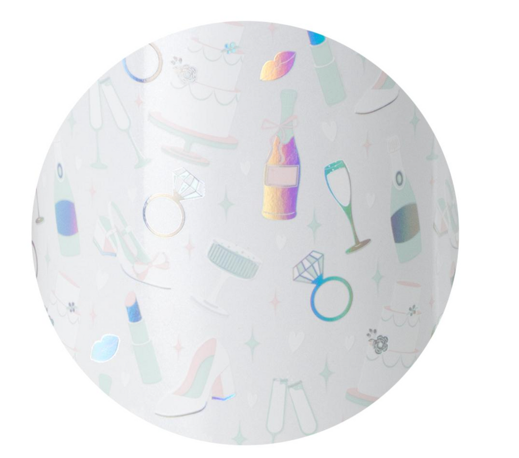Keep the celebration going for hours! 🍾 She said yes! Wedding excitement can be celebrated every day with this something blue and metallic white design. 👰