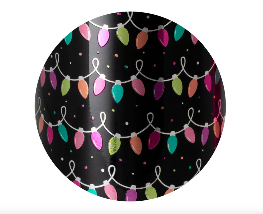 Party-Ready! 🥳🥤 Twinkling colorful metallic Christmas lights on a sleek black background, this playful print brings a bright and cheerful glow to every holiday sip! 💡🎀