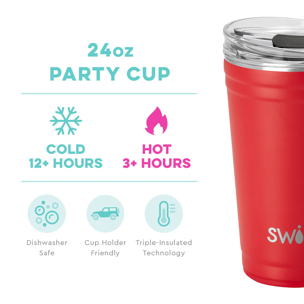 Party hard (and more sustainably) with our stackable 24oz Insulated Party Cups. Take bigger sips or chugs with our new slider lid that features a wider opening!