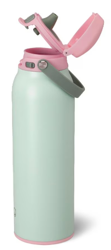 This innovative push-button cap with a locking mechanism makes hydrating on the go leak-free and worry-free. Pop open the top to easily sip and flip open the cap to refill without the inconvenience of twisting it off. The innovative lid design gives you the option to sip freely or chug quickly. Grab-and-go flex handle is convenient for carrying on hikes and hooking in lockers.