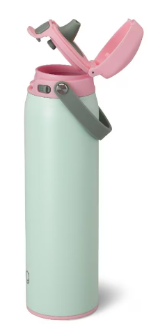 This innovative push-button cap with locking mechanism makes hydrating on the go leak free and worry free. Pop open the top to easily sip and flip open the cap to refill without the inconvenience of twisting it off. The innovative lid design gives you the option to sip freely or chug quickly. Grab-and-go flex handle is convenient for carrying on hikes and hooking in lockers.