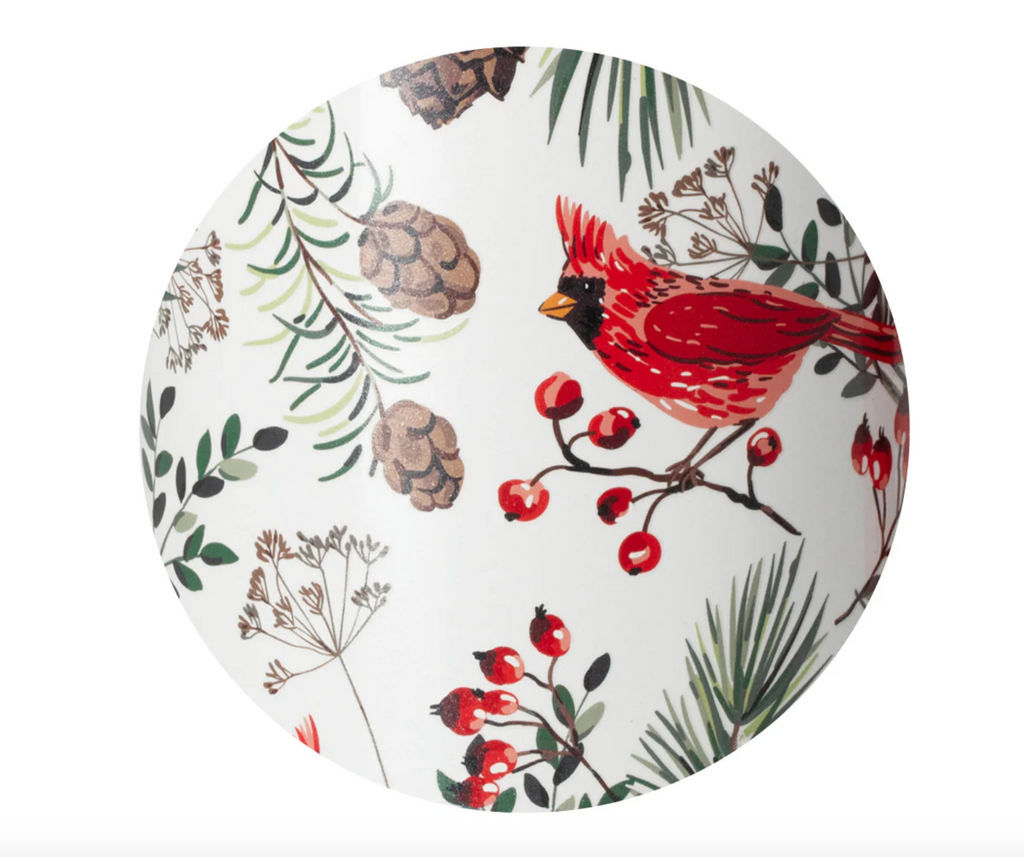 We've got it handled!Ā ā Traditional red cardinals perch on winter pine branches on a glitter snow white background. š¦