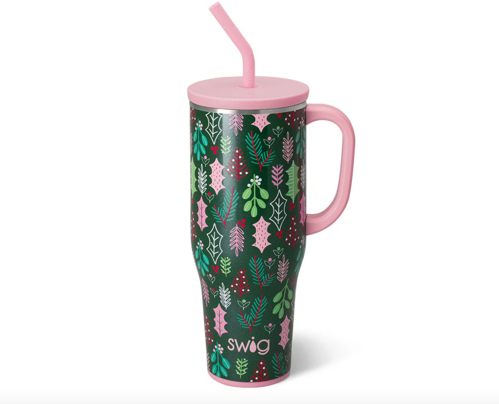 Hydrating has never been easier with our 40oz Insulated Mega Mug! A cup holder-friendly frame, a comfort-grip handle, and a plastic straw with a silicone flexi-tip all come together to create your new favorite Swig.