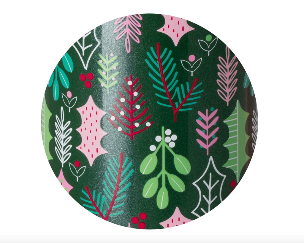 Mega sips, mega chill! 🧊 We will be waiting under the mistletoe with this festive holly and mistletoe design on a glitter pine green background.